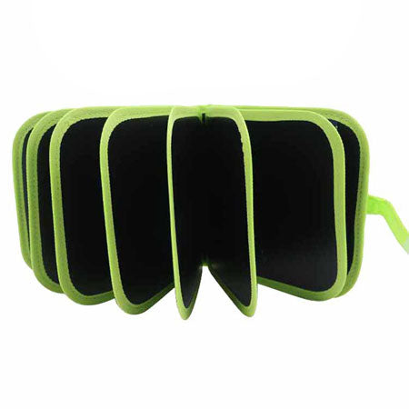 12 coloured pens are already in the pocket - no setup, no prep. Just open and go.